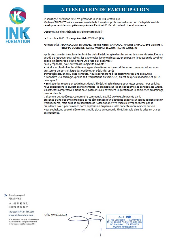 Formation en drainage lymphatique manuel lymphatique/veineux